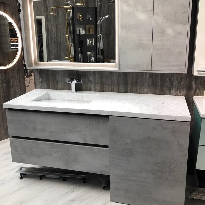 Рекомендуем: влагостойкий МДФ с покрытием, акрил, стекло. От обычного ДСП и незащищённого дерева лучше отказаться.